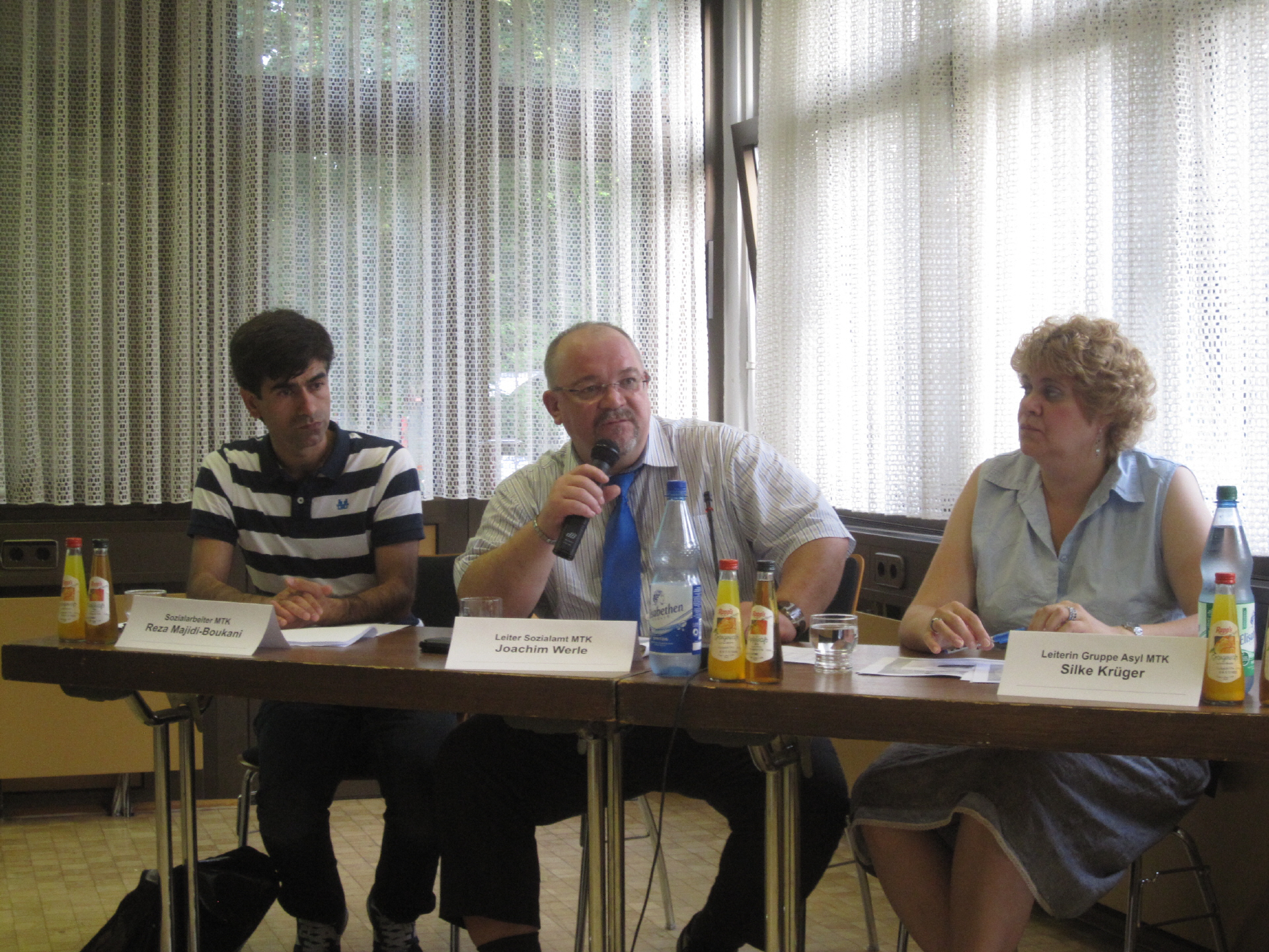 Bei der Verteilung auf die einzelnen Unterkünfte wird auf eine ethnische Mischung der Bewohner geachtet. Dies erhöhe den Anreiz, schnell die deutsche Sprache zu erlernen, um sich untereinander verständigen zu können. Sprachkenntnisse seien die Grundvoraussetzung für eine erfolgreiche Integration, betonte Werle ausdrücklich und wurde dabei von den anwesenden Vertretern des Krifteler Ausländerbeirates, Carmen Jimenez-Gutierrez und Gioacchino Mastrocola, bestätigt, die auf ihre guten Erfahrungen mit Sprachkursen hinwiesen. „Die Integration kann sofort beginnen“, so Werle, der darauf verwies, dass erfahrungsgemäß 80-90% der Asylbewerber ein dauerhaftes Bleiberecht in Deutschland erhalten.